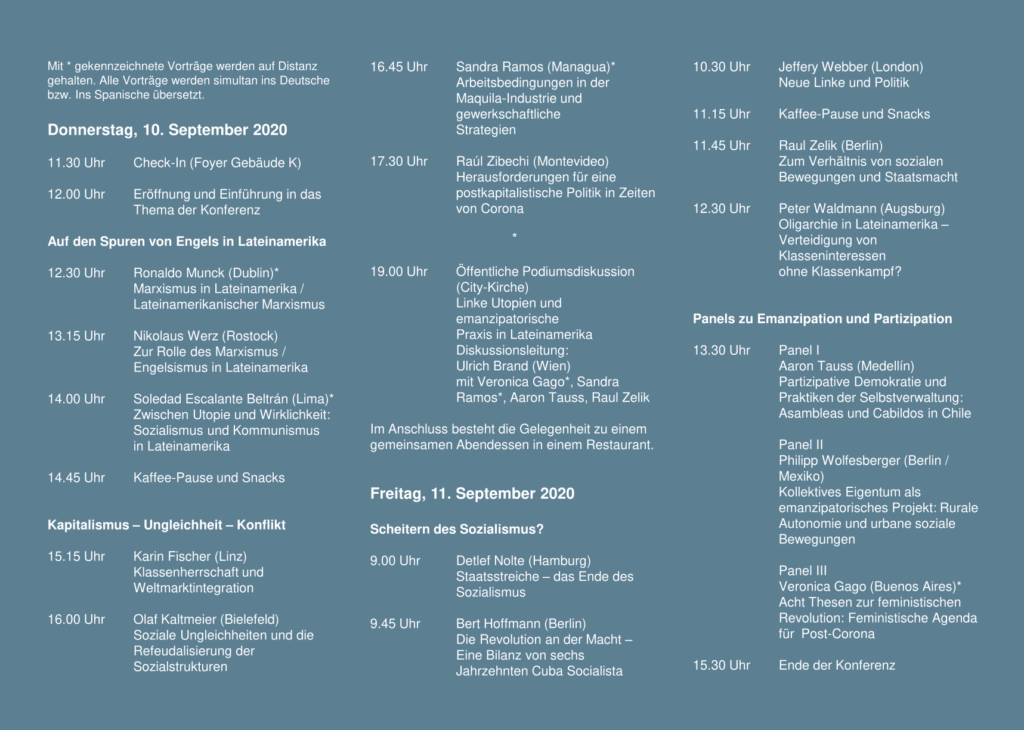 Anmeldung: bis zum 31.08.2020 verbindlich mit Namen, Adresse und dem Stichwort „Von Engels gelernt?“ unter anmeldung@infobuero-nicaragua.org