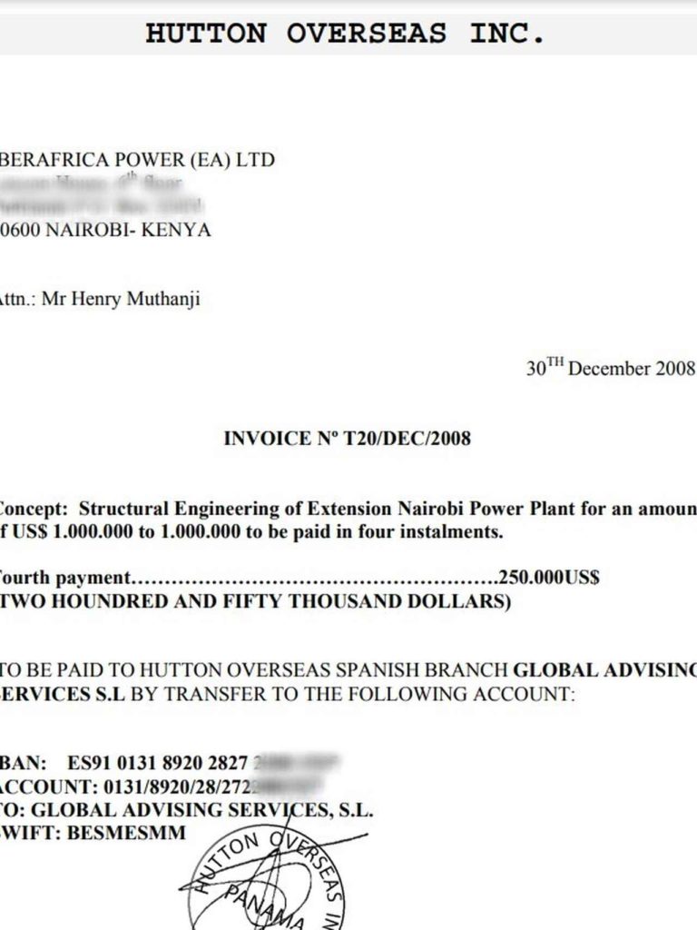 Für die Vermittlung in dem Konflikt zahlte Union Fenosa über ihre Tochtergesellschaft in Kenia Iberafrica Power LTD 1 Mio. EUR an das panamaische Unternehmen von José Herrero de Egaña, Hutton Overseas Inc. Die Zahlungen wurden mit vier Rechnungen vom 30. Dezember 2008 für angebliche Ingenieurleistungen für ein Kraftwerk in Nairobi begründet, wie aus den Dokumenten geht, zu denen der SPANIER Zugang hatte.