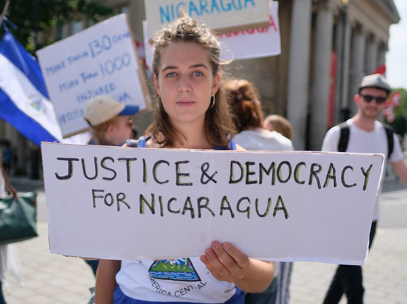 Demo in Großbritannien gegen die repressive Regierung unter Präsident Ortega – auch am Tag seines Amtsantritts gab es Demonstrationen in vielen Ländern weltweit / Foto: Alisdare Hickson via Flickr (CC BY-SA 2.0)
