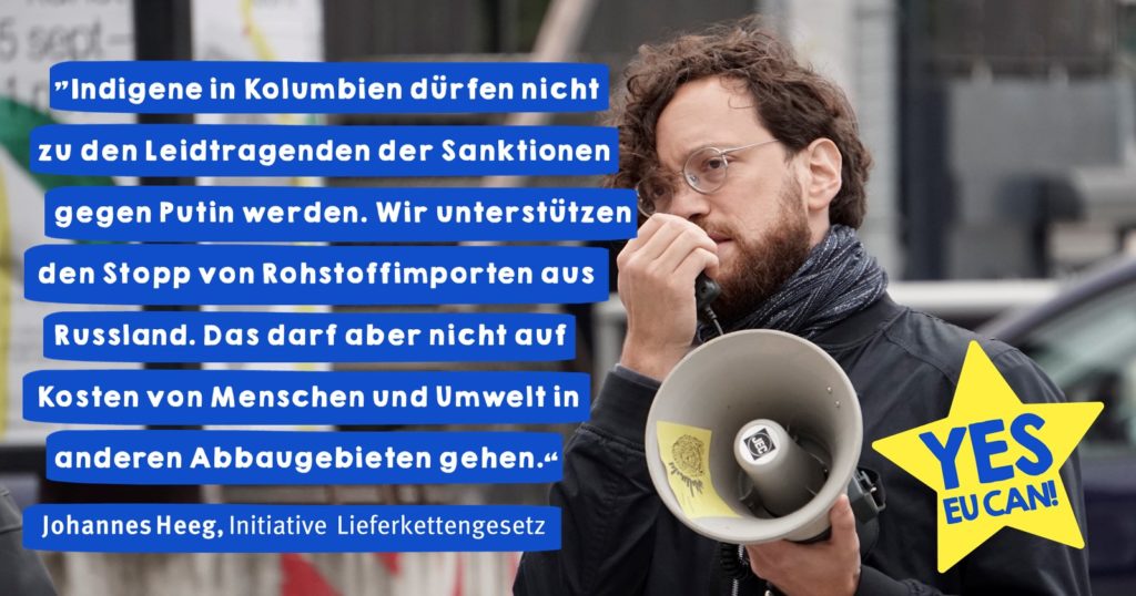 Der russische Angriffskrieg führt in der Ukraine zu schwersten Menschenrechtsverletzungen. Indirekt gefährdet er weit über die Ukraine hinaus Menschenrechte und die Umwelt, nicht zuletzt in globalen Rohstofflieferketten: Denn die europäische und besonders die deutsche Wirtschaft sind hochgradig abhängig von den Energierohstoffen Erdgas, Erdöl und Steinkohle sowie von Metallen wie Kupfer, Eisenerz oder Nickel aus Russland. Infolge des Krieges suchen Unternehmen und Regierungen jetzt fieberhaft nach alternativen Rohstoffquellen, um sich aus dieser Abhängigkeit zu lösen. Dies gilt besonders für Kohle und Erdöl, auf deren Import die EU ein Embargo verhängt hat, aber auch für metallische Rohstoffe.  Natürlich ist eine Abkehr von russischen Rohstoffimporten dringend geboten, um nicht länger zur Finanzierung des Krieges beitragen. Das Problem ist jedoch: Bei der Suche nach Alternativen fällt das Augenmerk auf viele Hotspots von Menschenrechtsverletzungen und Umweltzerstörung, teilweise in fragilen Ökosystemen. Die Initiative Lieferkettengesetz will zu diesem Problem nicht schweigen und veröffentlicht daher ein Briefing, in dem dieser Prozess am Beispiel verschiedener Rohstoffe aufgezeigt wird.