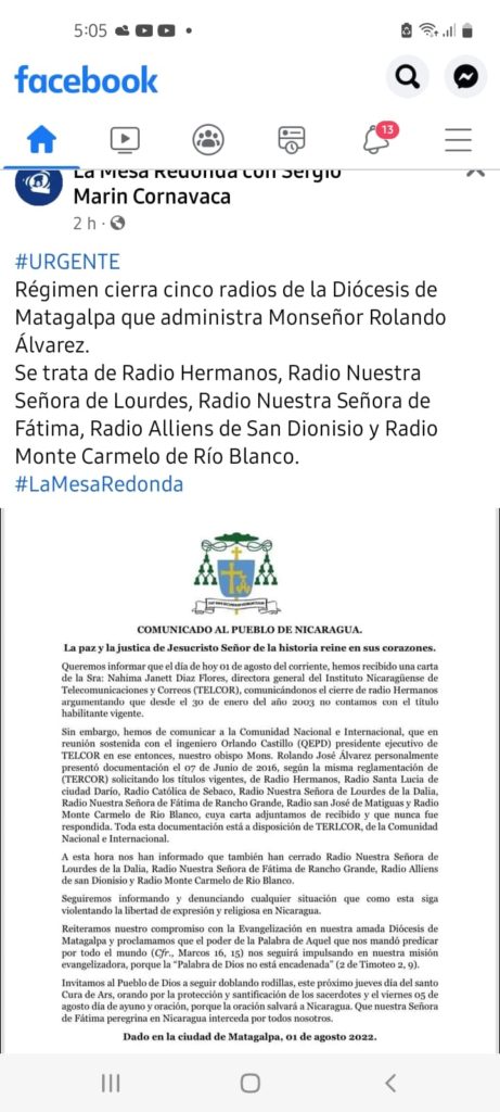 Das Regime hat fünf Radiosender der Diözese Matagalpa geschlossen, die von Bischof Rolando Álavarez geleitet wird.