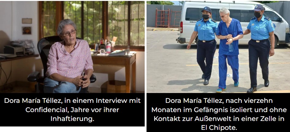 Die Diktatur von Daniel Ortega und Rosario Murillo präsentierte zum ersten Mal die vier politischen Gefangenen, die seit mehr als 14 Monaten isoliert und in Einzelhaft in den Zellen der Direktion für Rechtshilfe, bekannt als El Chipote, festgehalten werden. Regierungsnahe Medien zeigten Fotos von den Gefangenen Dora María Téllez, Ana Margarita Vijil, Tamara Dávila und Suyen Barahona, Mitgliedern der Unión Democrática Renovadora (Unamos), ehemals Sandinista Renovator Movement (MRS), die in den neunziger Jahren als Dissident der FSLN auftauchte.