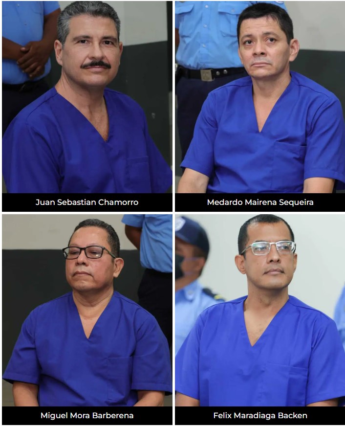 Die Vorkandidaten, die aus Gewissensgründen zu Gefangenen wurden, sind: Cristiana Chamorro Barrios, Arturo Cruz Sequeira, Félix Maradiaga, Juan Sebastián Chamorro, Miguel Mora, Medardo Mairena und Noel Vidaurre. Von diesen befinden sich drei im Schema „Haus statt Gefängnis“ und vier in den Zellen von El Chipote, die am 30. und 31. August vorgestellt wurden: der Ökonom Juan Sebastián Chamorro; der Bauernführer Medardo Mairena Sequeira; der Mitbegründer von 100% Noticias, Miguel Mora Barberena, und der Politikwissenschaftler Félix Maradiaga Blandón.