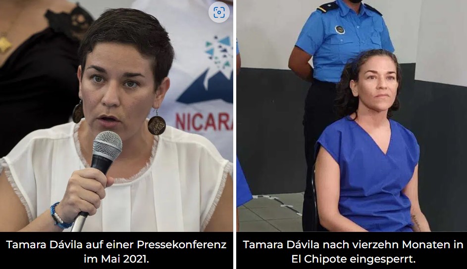 Verwandte von Tamara Dávila haben über ihre körperliche Verschlechterung berichtet, mit blasser Haut und dem Verlust von mehr als 40 Pfund Gewicht. Sie wurde am 12. Juni 2021 inhaftiert und im März 2022 wegen angeblicher „Verschwörung zur Beschädigung der nationalen Integrität“ zu acht Jahren Gefängnis verurteilt.