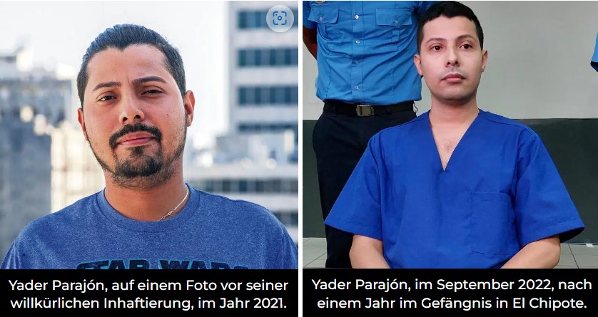 Der junge Oppositionsführer Yader Parajón wurde am 4. September 2021 festgenommen, als er versuchte, das Land über El Guasaule, einen Grenzposten zu Honduras, zu verlassen. Er wurde vom Ortega-Justizsystem der „Verschwörung zur Begehung von Schäden an der nationalen Integrität“ beschuldigt und zu zehn Jahren Gefängnis verurteilt