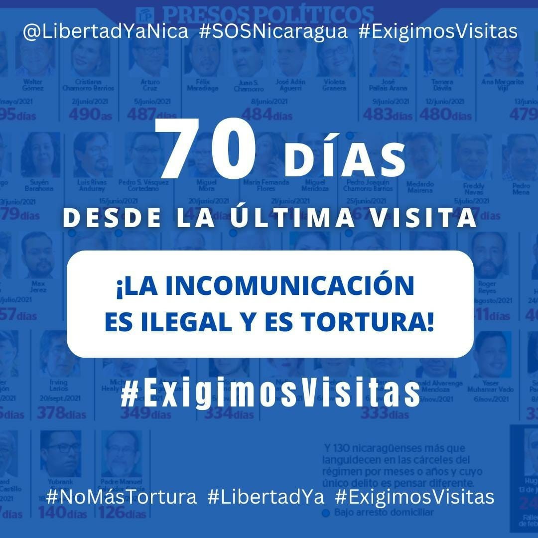 Mit zunehmender Häufigkeit setzen Gefangene in Hungerstreiks ihr Leben aufs Spiel, um Hafterleichterungen zu erreichen wie sie in der Erklärung von UNAMOS zum Hungerstreik von Dora María Téllez gefordert werden: „Das muss aufhören, alle Personen müssen Zugang zu Lese- und Schreibmaterial erhalten, Besuche müssen reguliert werden, die Ernährung muss verbessert werden und die von den Verwandten bereitgestellten Nahrungsergänzungsmittel und Medikamente müssen vollständig und rechtzeitig geliefert werden, mit einem Wort: Ihre Rechte, die jeden Tag von der Diktatur verletzt werden, müssen respektiert werden.”