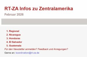 Infos zu Zentralamerika 28.2.2026 2. Nicaragua Veranstaltung in Wuppertal: Am 15. März 2026 lädt das Informationsbüro Nicaragua zusammen mit das.donnerstagGespräch und Attac Wuppertal zu einem Gespräch…