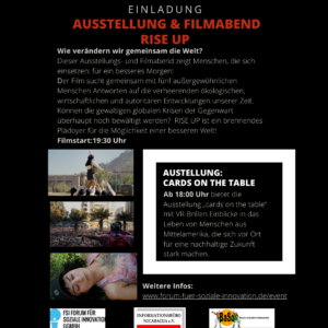Ausstellung, Film- und Diskussionsveranstaltung des Informationsbüro Nicaragua in Kooperation mit BASO und dem Forum Soziale Innovation